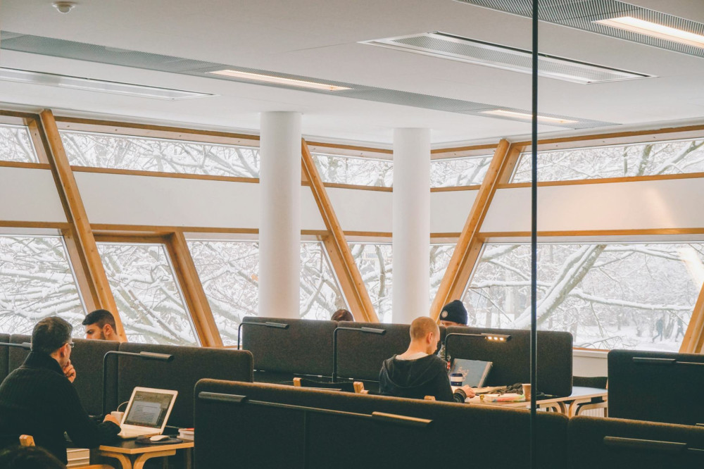 Tänk också på materialens yta. Blanka ytor reflekterar mycket ljus, medan matta ytor ger ett mjukare intryck. Trä, textilier och gröna växter kan tillföra värme och bryta av mot det sterila uttryck som många kontor annars får.